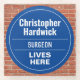 Fun Commemorative Style Wall Plaque Gift in the form of a Glass Coaster for a Surgeon. Blue and white plaque. Edit the design to change the wording to suit the gift recipient.