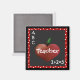 This fun teacher's magnet is done in black, red, and white. Graphic artwork of a red heart shaped apple against a blackboard style background and a whimsical red, with white polka dot frame. White text reads ABC and 1+2=3 in opposite corners of the magnet. Teacher in white text is customizable to read anything you want. Great little gift for any teacher or tutor.