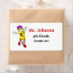 Fun teacher's name tag, with graphics of an animated pencil, on the left side of the sticker. Three separate lines of text are fully customizable to suit your needs. Great for School open house, Back to School and other meet and greet school events. Great for class room books and other items in the class room too.