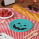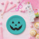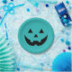 Fun teal jack o lantern pumpkin face Halloween Paper Plates