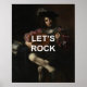 Vintage 1625 Renaissance lute player oil painting with "let's rock" text quote added.