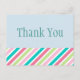 Fun thank you stripes for your postcard. Featuring pink, white, blue and green stripes, mail these to your guests. Place your order today!