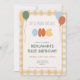 Fun to be One first birthday invitation, watercolor plaid birthday theme designed for a bright and modern celebration. Featuring soft yellow watercolor stripes forming a playful plaid pattern, combined with colorful balloons and cheerful typography, this invitation creates a fresh and joyful look for your baby’s first birthday.
