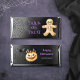 Celebrate Halloween with our spooktacular personalized Hershey chocolate bars. Design features skeleton sugar cookie and spider web set against dark background. Playful, Halloween-themed font spells out "Trick or Treat," adding a touch of spooky fun. The reverse side adorned with evil pumpkin cookie, surrounded by spider web and a spooky black bat. Add a personalized spooky sweet touch to these custom-wrapped treats that everyone will love!
