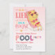 Fun Tropical Flamingo Pool Party Pink Blue Modern Invitation