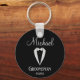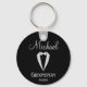 fun tuxedo with bow groomsman personalized black grey chic keychain, two sided.