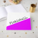 This fun sporty design features PICKLEBALL text in retro typography displayed at an upward diagonal slant. The text is situated at the bottom edge of the top white color block. The diagonal bottom section of the design is vivid tropical pink.