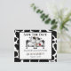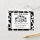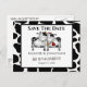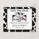 Mr. and Mrs Cow with wedding rings and a rose. Fun save the date postcard to send to wedding guests.