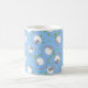 A fun Coffee Mug with a pattern of comic sheep and 'Cymru am Byth' in Red, on a Sky Blue background that you can change if you wish.