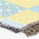A Throw Blanket to customize, with a Faux Patchwork design of Sheep motifs and patterns in Blues and Yellows, teamed with coordinating Check Ginghams and Polkas Dots. From a whimsical illustration by Judy Adamson, you can customize the scale of the sheep pattern.