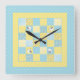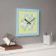 A fun Square Wall Clock, with a Faux Patchwork design of Sheep motifs and patterns in Blues and Yellows, teamed with coordinating Check Ginghams and Polkas Dots.