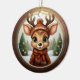 Fun Whimsical Winter Wildlife Christmas Decor. Xmas Reindeer Personalizable Rustic Wooden Frame Decoration. Deer with antlers custom Holiday tree ceramic ornament. Inside, a cute baby woodland animal in a cartoon graphic style, wearing a coat, hat with customizable text and scarf. In the background, a wintry snow wonderland scene, completes the season's charm of this unique doe. The two sided illustration ensures that no matter how the hanging design turns, it always looks festive and complete. 🦌🎄