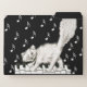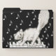 This set of three file folders are black with the fronts covered in white music notes and a fun white cat with a big fluffy tail winking as he walks across piano keys.