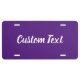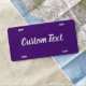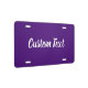 A white script serves as the display text in the center of this royal purple license plate. You can edit the text as desired.