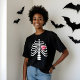 Halloween themed shirt design featuring our fun white skeleton rib bones to create the impression of an x-ray of the skeleton bones. A cute little red heart is added behind the skeleton bones to create a cute style. The reverse side of the t-shirt features a white cross bone and red heart emblem monogram design, which you can personalize with your own monogram initial. All artwork contained in this skeleton rib bone heart halloween t-shirt are hand drawn original artwork by Moodthology. You can customize the text size, text colour, font and layout for your own personal design preference.