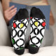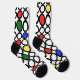 My original digital artwork is on these fun socks featuring a retro asymmetric circle pattern - wiggle shapes in black and white, with random colors filled in on some circles. These playful crazy socks are considered a sustainable product and are printed with water-based inks. Cozy and comfy and make a great gift. One size truly fits all.