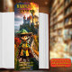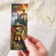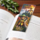 Bookmark featuring a boy dressed as a wizard. In the background a fantasy landscape with a castle under flaming skies. Great for a child that loves to read adventure stories about magic and miracles.