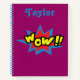 Fun and colorful, this notebook design features "Wow" inside of a star blue and red text box. The background is purple. Order yours today!