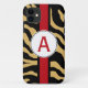 A fun tan and black zebra pattern decorates this iPhone 5 Case. Customize this phone by changing the monogram letter to suit your needs. The design is from original artwork.