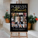 Elegant funeral memorial foam board poster featuring 15 photos of your lost loved one, the text "forever in our hearts", their name, and birth/death dates.