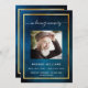 A blue sky as background, a faux gold frame . Personalize and add a photo, name, dates and your text. White text.