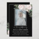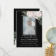 This stylish funeral floral elegant Woman program featuring lush bouquet blush pink Roses and rustic flowers , a photo of your loved one in white frame, their name and dates of life and text in loving memory on simple black background. The reverse side of this program is black colored with chic white flowers, ang greenery frame with funeral order service .