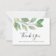This botanical funeral notecard is decorated with minimalist watercolor foliage and stylish script typography.