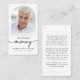 Funeral In Loving Memory Photo Script Prayer Cards. Keep the memory of a loved one close with this custom personalized prayer card featuring one treasured photo in an arch shape, the title IN LOVING MEMORY, name and dates and an editable heartfelt remembrance message. With its simple yet elegant classic black and white design and modern handwritten script swash typography, it makes a meaningful keepsake to share at a funeral, memorial service or Celebration of Life and offers comfort and a lasting tribute for family and friends. Its small and portable size of 3.5x2" (wallet-sized) makes it convenient for loved ones to carry it with them as a reminder of your loved one’s life and spirit. Personalization makes each card unique.