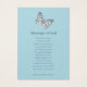 Simple pocket-sized keepsake tribute prayer or poem cards give families the ability to have a tribute keepsake remembrance. These painted lady butterfly memorable tribute pray cards can be personalized with your own special photo, life details, and prayer or poem on the reverse currently has the poem Messenger of God. The photo is for illustration purposes only please replace it with your own loved ones' photo. Inked butterfly art in dark blue, sky blue, coral, ivory and white. Inked art and design by Sarah Trett for www.mylittleeden.com