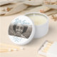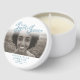 Funeral in our hearts forever modern simple white and gray blue typographic text condolences candle. A simple keepsake tribute remembrance gift to burn as a tribute or to place graveside or light at the wake. Personalize with your own photo and name of your loved one. Original typographic heart graphic design by Sarah Trett for www.mylittleeden.com (Photo credit by Guilherme Stecanella on Unsplash model photo is just a placeholder image for you to replace with your own special photo).