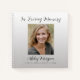 Personalize "In Loving Memory" funeral sign in notebook with Silver Gradient, Black Script Name, Dates and Photo. Extra text on back or delete.