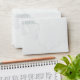 Envelope with a soft, muted watercolor wash exterior with an optional return address pre-printed on the front (delete the sample text to leave blank) and IN LOVING MEMORY OF (NAME) on the back accented by leaves representative of broken hearts. The inside has a coordinating brighter watercolor wash. All text is in a coordinating sage green color. Contact the designer if you'd like this design modified or you'd like a coordinating item.
