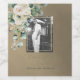 A floral bouquet in neutral colors and leaf foliage is the basis for this elegant custom funeral or memorial wine bottle label.