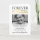 Elegant funeral program featuring a stylish black background that can be changed to any color, a picture of your lost loved one, the text "forever in our hearts", the funeral details, an obituary, order of service, the details of the wake, another photo on the back page, and a personalized thank you note.