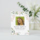 Funeral order of service/thank you note featuring a classic white background, a beautiful floral and foliage watercolor decoration, a modern square photo of your lost loved one, memorial order of service, and a thank you template that is easy to personalize.