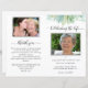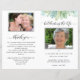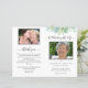 Tasteful funeral memorial program featuring the photo of your deceased love one, showcased by beautiful watercolor greenery detail in pale turquoise, blue and green hues. On the front below deceased photo you can add their name, birth and date of death, memorial venue address and date. Inside to the left, there is an area for the obituary and to the right an area for order of service. On the back there is opportunity to add a second photograph, a thank you message and directions for after funeral directions. NOTE: program comes in a flat quality paper sheet that will need to be fold once you receive them. Coordinating Celebration of Life Invitation Card, guestbook, Welcome Photo sign and thank you notes also available. Part of our "Delicate Funeral, Memorial Collection".