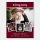 Create your own unique photo collage. Use four, 4 of your favorite photo. With the text: in loving memory. Personalize and add a name and dates. Burgundy background, white text.