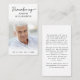 Funeral Photo Remembering Name Modern Prayer Card. Keep the memory of a loved one close with this custom personalized prayer card featuring one treasured photo, the title REMEBERING NAME, dates and an editable heartfelt remembrance message. With its simple classic black and white design and modern handwritten script swash typography, it makes a meaningful keepsake to share at a funeral, memorial service or Celebration of Life and offers comfort and a lasting tribute for family and friends. Its small and portable size of 3.5x2" (wallet-sized) makes it convenient for loved ones to carry it with them as a reminder of your loved one’s life and spirit.