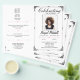 Celebrating The Journey Folded Program in black and white, with elegant fonts. This funeral program is a special way to remember your loved one. Easily edit all of the wording to accommodate the services and memories you would like to share. Add a photo of your loved one along with their name and years living. On the back you can write the obituary and program. There is plenty of room to describe your memorial service. Please message me, if you need help finding a matching items. Fold it yourself for a elegant and practical funeral program!