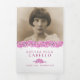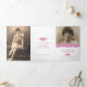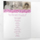 Funeral program order of service gatefold floral forget-me-not flowers art funeral program in white, red-pink, pink, with touches of yellow and green on white paper. Simply replace the sample text and photo holders with your own special photos and information details. Original inked drawing and watercolor artwork and design by Sarah Trett for www.mylittleeden.com (photos are just placeholder images for you to replace with your own).
