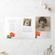Funeral program order of service double-sided floral striped rose botanical watercolor art funeral program. Replace the sample text and nine placeholder photos with your own special photographs, memorial order of service, obituary, outside dove release, flower viewing information, reading or poem, and acknowledgments, and other personal information details as required. Original hand watercolor floral painting and design by Sarah Trett for www.mylittleeden.com (the photos are just placeholder images for you to replace with your own special photos).