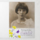 Funeral order of service tri-folded six page wildflower and butterflies watercolor art program. Embellished with purple butterflies, yellow velch and pale blue purple harebells on a white background. Simply replace the sample text and add your own full size photos on two pages and use the smaller instant style white framed photo holders with further of your own special photos. Original botanical and butterfly hand watercolor and design by Sarah Trett for www.mylittleeden.com (photos are just placeholder images for you to replace with your own).
