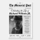 Commemorate a life well lived with this custom newspaper-style funeral sign and program. Designed to resemble a vintage front page, this memorial piece features a photo, obituary-style article, and event details—doubling as both a welcome sign and a printed program. A heartfelt and unique way to share their story and celebrate their legacy at a Celebration of Life or memorial service.
