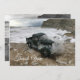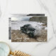 This Natural Memorial Thank you card with a photo of a small retro toy car. The photo shows a stormy sea and lush sea foam, picturesque mountains and wet sand. Very expressive photo. Оn the back of the Memorial Thank you card, the photo is made in black and white with a frame for words of gratitude.