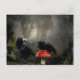 In this dark and magical forest you'll find The Fungi Experts. Image depicts two crows studying the colorful but poisonous amanita muscaria, commonly known as the fly agaric or fly amanita. One crow is sitting on top of the mushroom, while the other one wearing the spectacles inspects it. Photo by Hartwig HKD