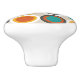 This funky retro style patterned ceramic knob features circles of tan, white, two shades of orange, teal blue, and brown. This is sure to be an eye catcher on your dresser or night stand!