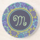 Funky Abstract Blue Floral Pattern Monogram Coaster