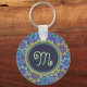 Funky Abstract Blue Floral Pattern Monogram Keychain