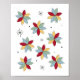 This funky flower mid century poster features red, blue, yellow, and green abstract daisy flowers along with starbursts and dots. It will add that POP you want on your wall!