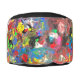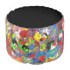 Brighten up your room with a funky and colorful pouf featuring my son's abstract dynamic painting.